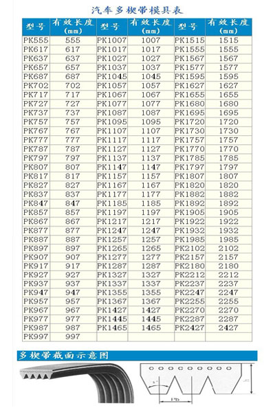 | 多楔帶規(guī)格參數(shù)表 |